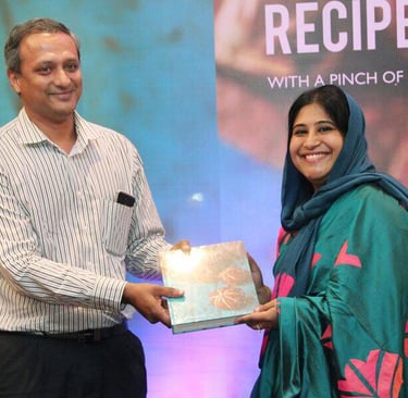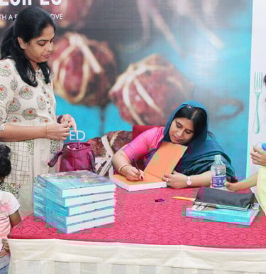 This photograph captures one of the proudest moments of her journey — the first edition of Ravuthar Recipes reaching 1,000 copies sold, followed by another 1,000 copies of Edition 2.