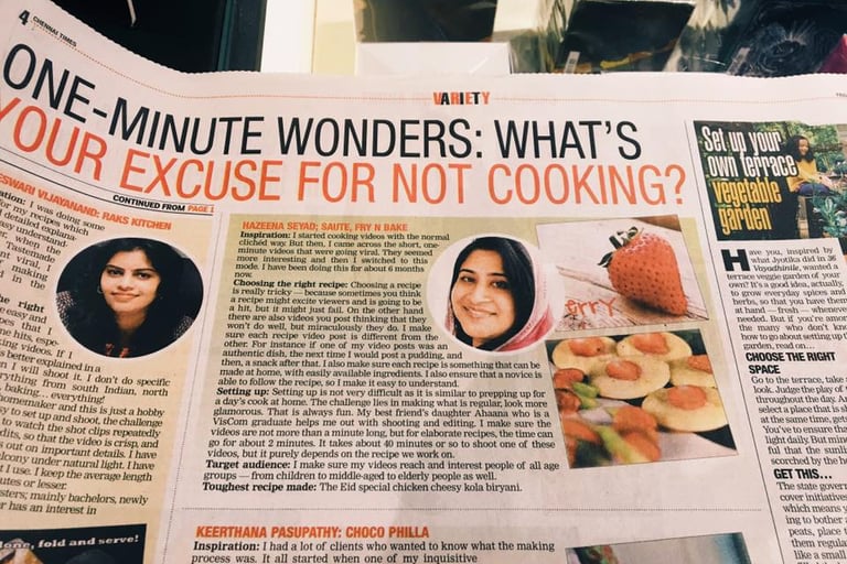 To document her experiences, she created the Facebook page Sauté, Fry n Bake, where she shared everyday traditional dishes. With consistent effort and 27 years of home-cooking experience, her page grew to over 20,000 followers, earning appreciation from food lovers around the world. Encouraged by her community, she expanded her culinary work through various online platforms.